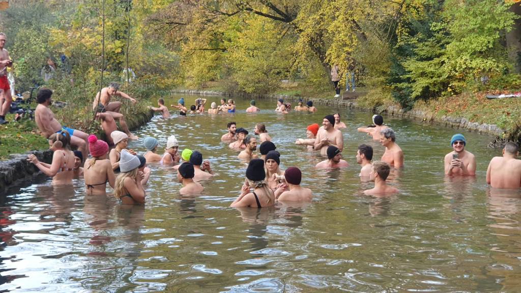 Die Eisbadesaison von Munich Hot Springs ist nun offiziell eröffnet. Am vergangenen Sonntag um 11 Uhr trafen sich gleichgesinnte Eisbader:innen am Eisbach im Herzen des Englischen Gartens in München. Diese unerschrockene Gruppe von Neulingen und erfahrenen Eisbadern versammelte sich voller Vorfreude, um die in die neue Saison gemeinsam zu starten.