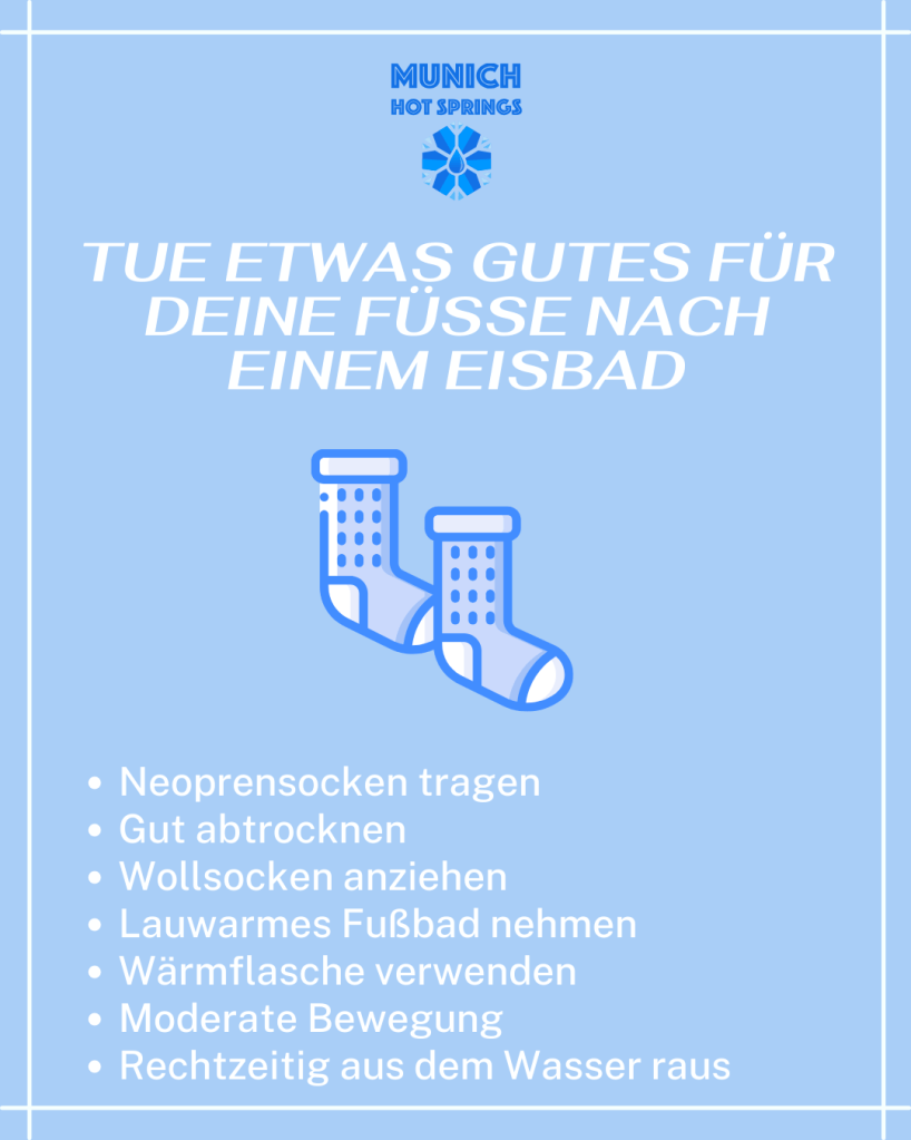 Nach dem Eisbaden ist die richtige Pflege der Füße entscheidend, um mögliche Beschwerden zu minimieren. Das Tragen von warmen Wollsocken z.B. aus Merino- oder Alpaka-Wolle ist dabei besonders empfehlenswert. Diese unterstützen die natürliche Wärmeregulation des Körpers und verhindern, dass die Füße zu schnell auskühlen.