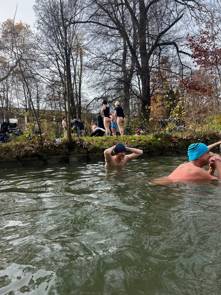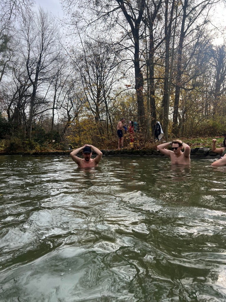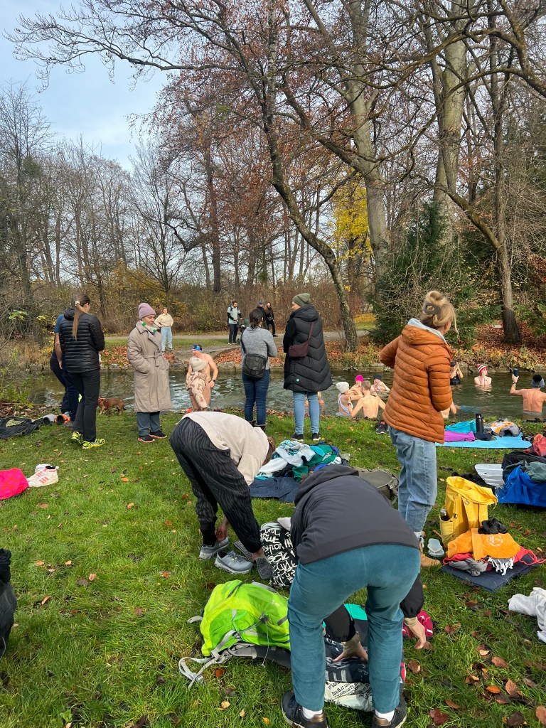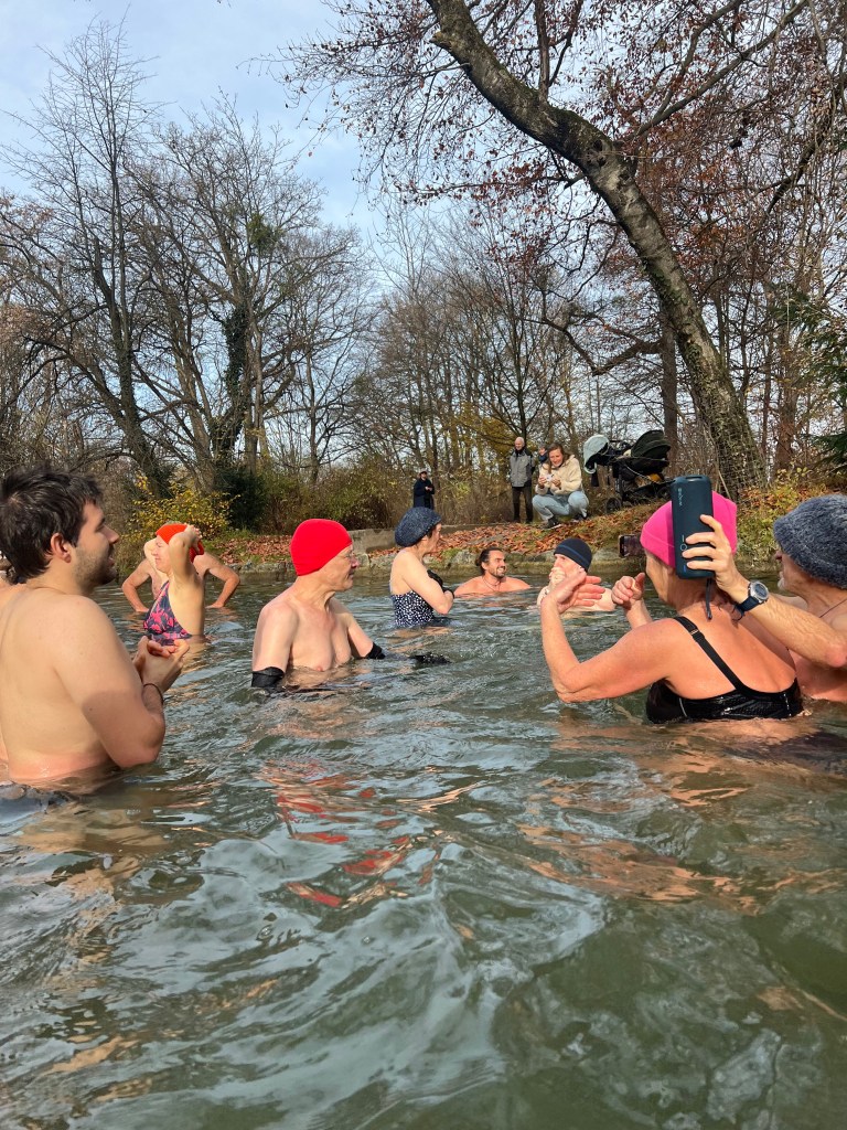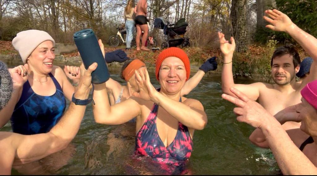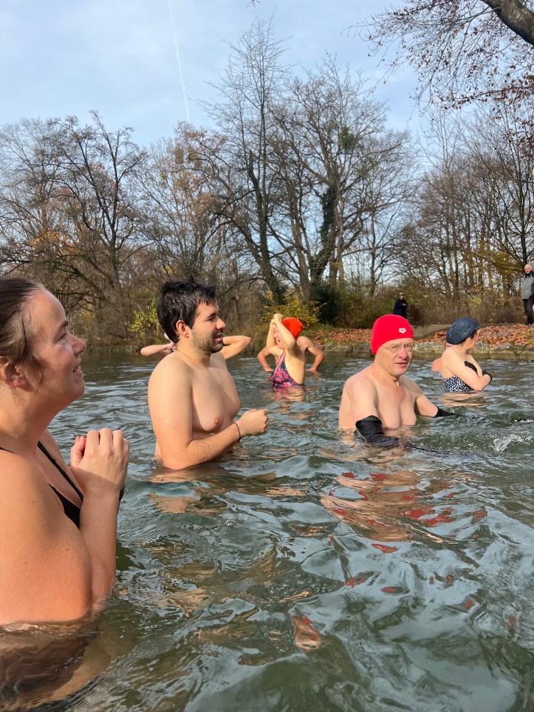 Nach einer kurzen Willkommensansprache unserer Munich-Hot-Springs Trainer (Irina & Daniela) haben wir uns als Gruppe gesammelt und den Schritt ins kalte Wasser gewagt. Jede und jeder auf die eigene Weise: Einige brachten Musik mit und sorgten für lebendige Party-Stimmung am Ufer, während andere ganz in Ruhe in sich gingen, atmeten oder meditativ in den Moment eintauchten. Diese Vielfalt macht unsere Treffen besonders – jede Person bringt etwas Eigenes mit, das unser Miteinander bereichert.