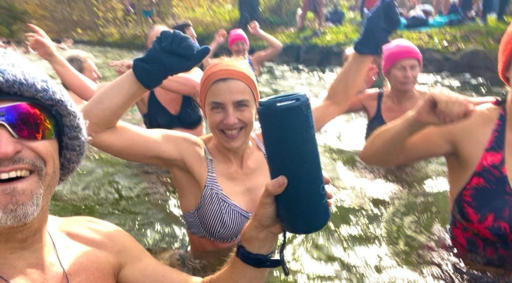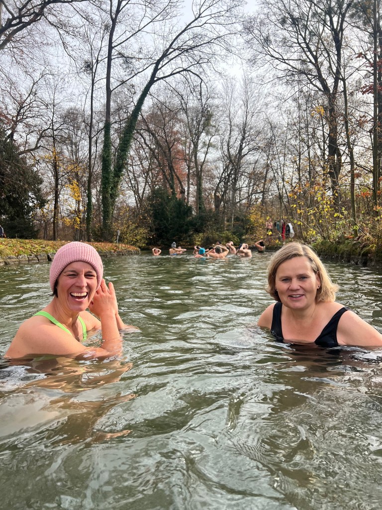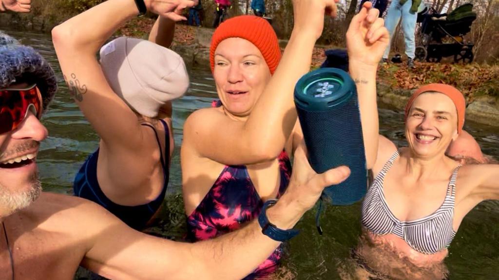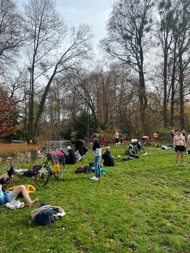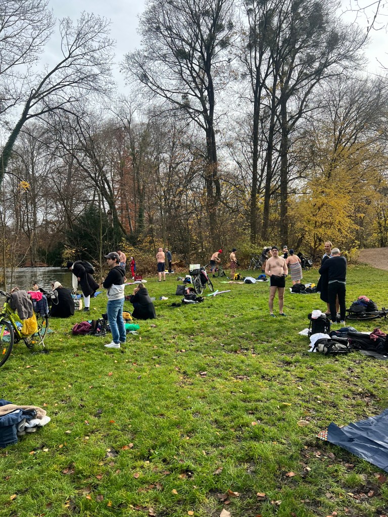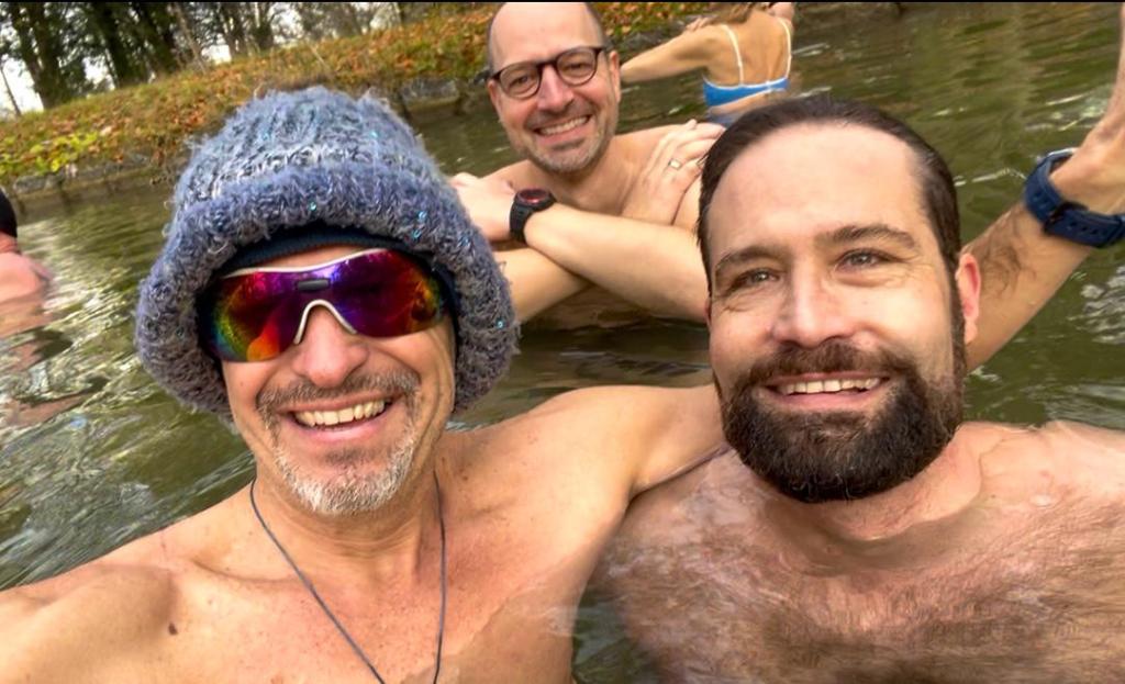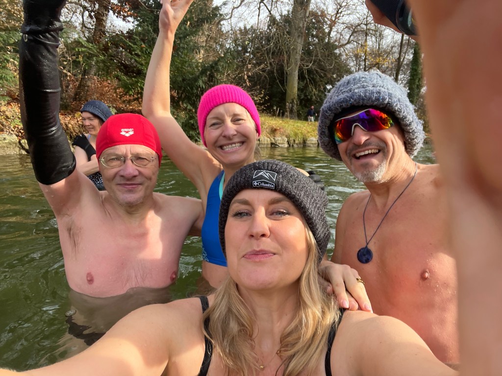Nach einer kurzen Willkommensansprache unserer Munich-Hot-Springs Trainer (Irina & Daniela) haben wir uns als Gruppe gesammelt und den Schritt ins kalte Wasser gewagt. Jede und jeder auf die eigene Weise: Einige brachten Musik mit und sorgten für lebendige Party-Stimmung am Ufer, während andere ganz in Ruhe in sich gingen, atmeten oder meditativ in den Moment eintauchten. Diese Vielfalt macht unsere Treffen besonders – jede Person bringt etwas Eigenes mit, das unser Miteinander bereichert.