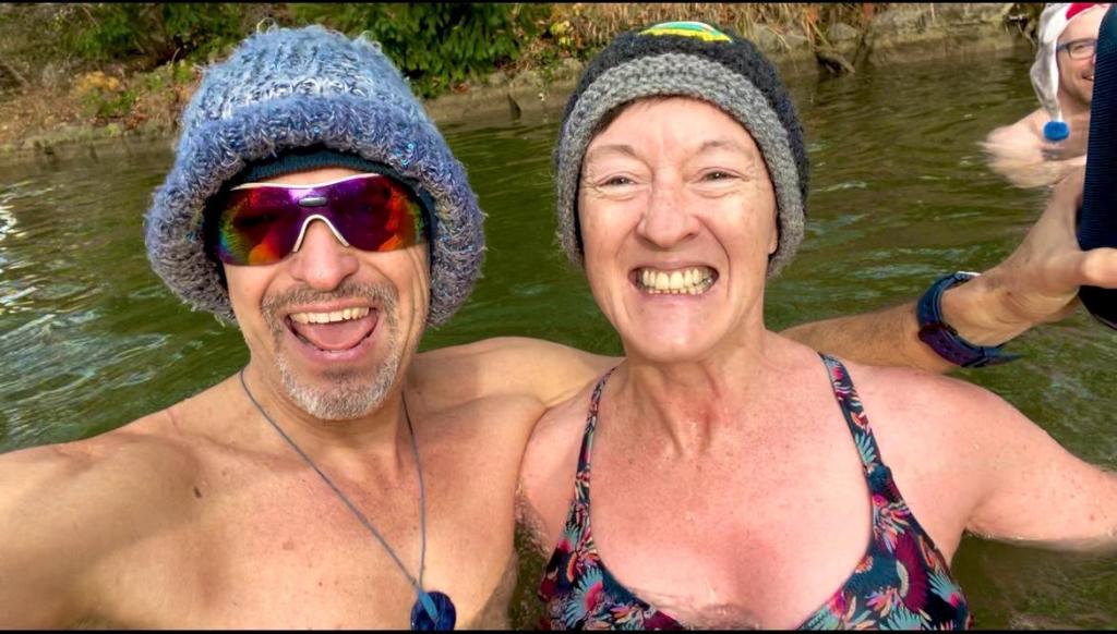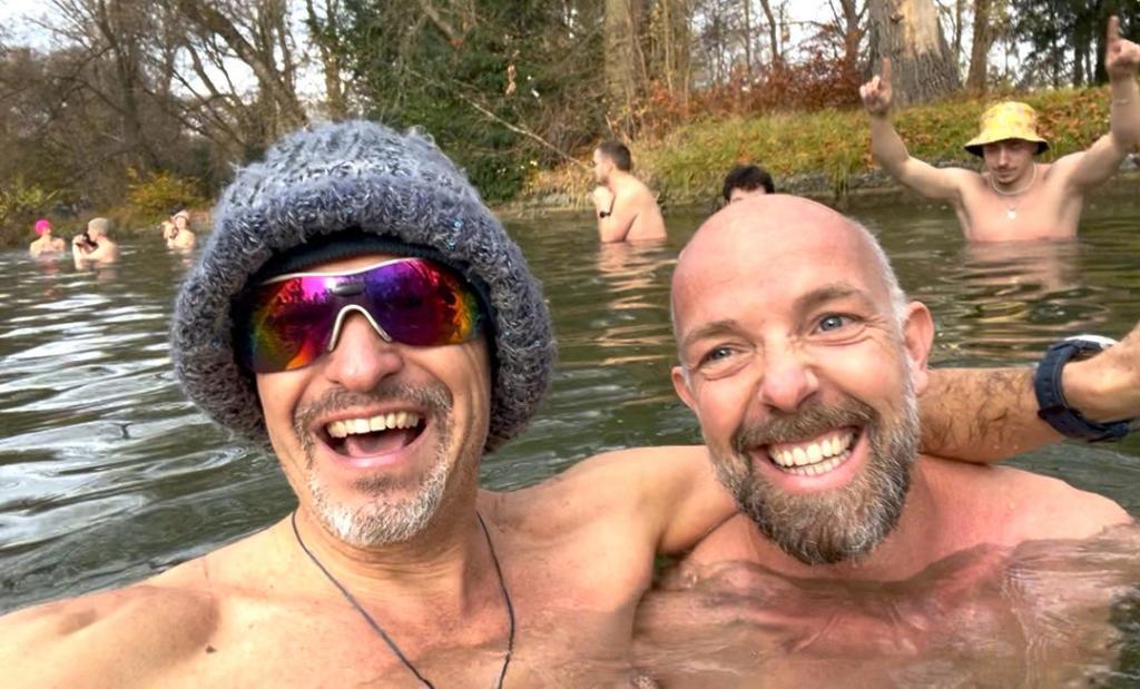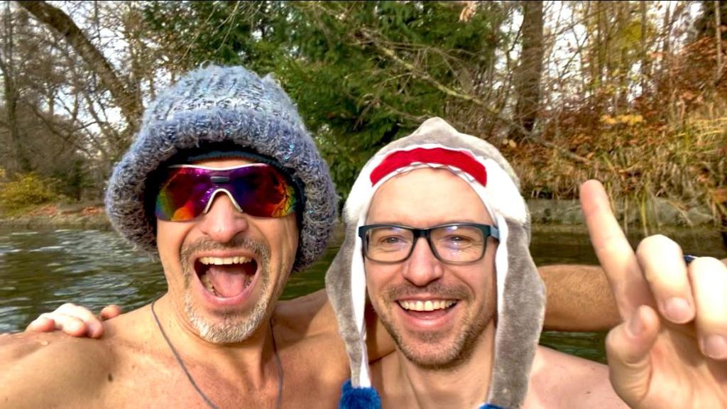 Eine Begleitperson für den Notfall: Gehe niemals alleine zum Eisbaden – am schönsten geht es zu zweit oder sogar in einer größeren Gruppe.